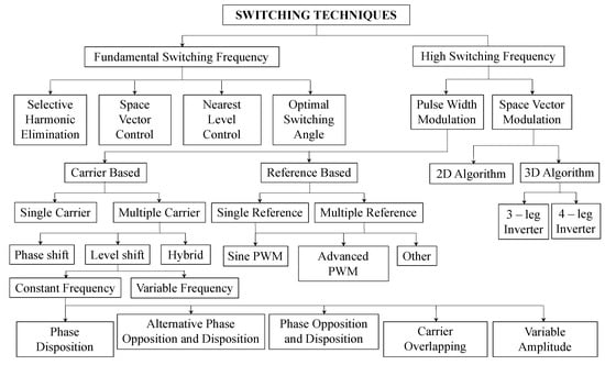 Schematic diagram of the different PWM switching techniques for power converter applications.
