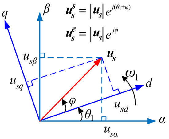 As shown in Figure 5, the voltage complex vector in the stationary coordinate system can be expressed by a corresponding vector in the rotating coordinate system: