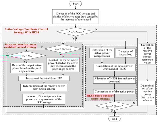 When ω ≥ ωx, the energy flow in HESS is managed by the proposed auxiliary control strategy. The HESS-based auxiliary control strategy sets the critical operating point X as a dynamic reference point to define the initial state and establishes the criterion based on ωx and ωcr. The proposed control strategy of HESS is described in Figure 9.
