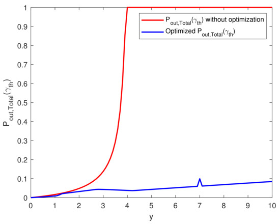 Now, using the definition of outage probability, the outage probability of Y (denoted by ) for any given threshold value can be formulated as follows: