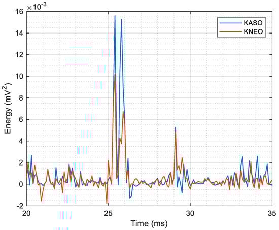 By observing Equation (5) it can be noted that the energy operator will be high when the signal is large in power (x2(n)) and high in frequency (high amplitude and small slope). By considering this behavior and the fact that the spike is a sudden amplitude change, Zhang et al. [20] described and proposed a novel operator called ASO (here referred to as kASO), it is formulated in Equation (6).
