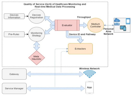 In recent years, quality-of-service and computation of data processing related to healthcare has become a crucial challenge in several research domains, for example, metaheuristics, machine learning, artificial intelligence, and deep learning using medical data and processed records preserved in hospitals [26,27]. The process of medical-data collection, and design preprocessing set up, in healthcare is an important task, in which the collection of data records is dependent on the three main stages of data flow generated from clinical trials, medical research-related records, and operations of organizational data [28]. Examination and analysis of this collected data for computer-based assistant aids and the creation of real-time platforms (and quality-of-services) have become an advanced development trend of recent smart healthcare [29,30,31].