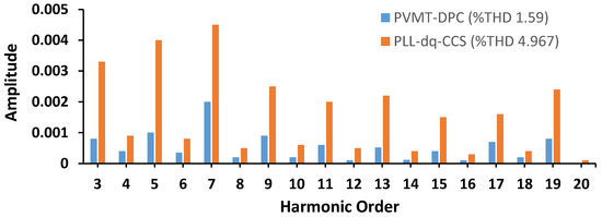 In this section, the mathematical modelling of PV-VSI based on DPC and PVMT is presented. L-filters were used at the output of PV-VSI to reduce the harmonics in current and voltage. In Figure 2a,b, the schematics of the dq CCS-based control method with PLL and the proposed PVMT-based FLDPC method without PLL are presented respectively.
