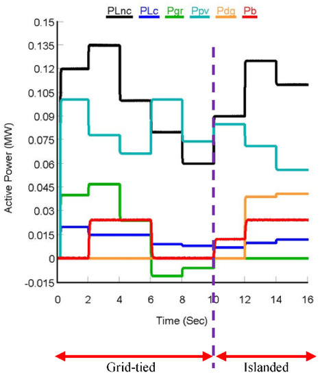 To verify the performance of the proposed PLL-less FLDPC method, two types of load were considered in this study, namely, critical and non-critical load. The load values were chosen based on the MG generation capacity, which changed with respect to time.