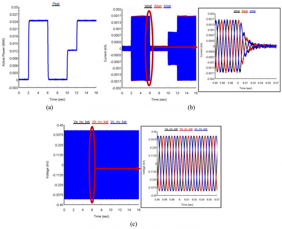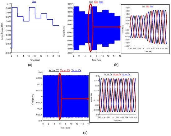 Two case studies were conducted in this study to validate the performance of the proposed power controller. For the first case study, the steady-state and transient response of the proposed controller for PV-VSI was validated by changing both real and reactive power references, and by changing only real power references. The results were compared with those of the conventional PLL-PI-integrated dq CCS-based control method, proposed in [6]. For the second case study, load demand and solar irradiation were varied to test the proposed controller performance during MG’s different operating modes. Finally, a comparative study was conducted to prove the preeminence of the proposed FLDPC method.