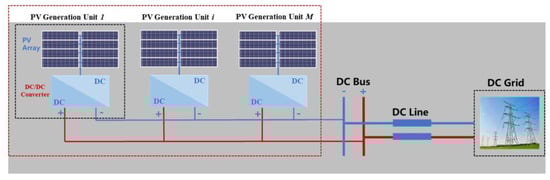 Generally, the PV array takes 500 kW or 1 MW as a unit, and a PV generation unit is composed of a PV array and a DC/DC converter. The collection of PV power can be realized by parallel connection of the output of the PV generation units, and then the PV power is transmitted to the HVDC grid through the HVDC transmission line. The HVDC bus voltage of the collection and grid-connected system is controlled by the HVDC grid. Each PV generation unit in the system only needs to control the output current of the converter to control the PV grid-connected power.