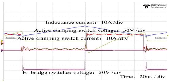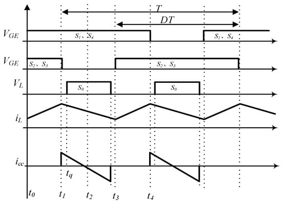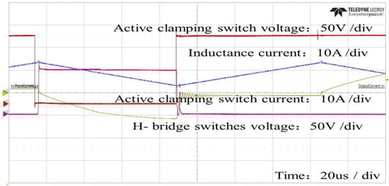 The control sequence of BFBIC topology with active clamping circuit is shown in Figure 4. According to the operating characteristics of the boost full bridge isolated topology, the duty cycle of H-bridge power switches meets 0.5 < D < 1. The symmetrical PWM control mode is adopted, that is, the trigger pulse signal of diagonal switches are consistent, and the phase shift between S1, S4 and S2, S3 is 180°. When the power switches S1, S4 or S2, S3 are turned off, the clamping switch S0 is turned on to share the inductive current and suppress the H-bridge switches turning off voltage spike.