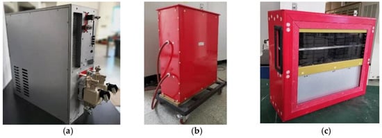 Figure 23 shows the layout of the proposed ±30 kV/1 MW DC/DC converter. The left side of the converter is the high voltage switch cabinet, which consists of the contactor, soft start-up resistor, earthing knife-switch, and voltage and current measuring device. The middle part is power conversion cabinet of the converter, which consists of fourteen power modules and adopts a back-to-back layout structure. The right side is the low voltage part of the converter, which mainly consists of the controller of the converter.