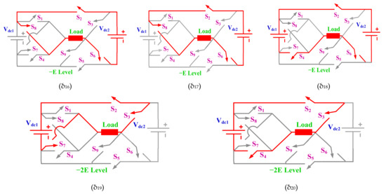 All twenty switching states of proposed five-level fault-tolerant topology.