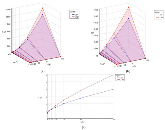 PLECS software has been used to calculate the power loss and efficiency, and the software’s thermal modelling is used to correctly determine conduction and switching losses for all switches. Infineon’s IGBT switch IGA30N60H3 was chosen for this investigation. Figure 6 depicts the IGBT’s turn on, turn off, and conduction loss models, respectively, and two types of losses were considered, i.e., the switching losses (PS) and conduction losses (PC) of all the semiconductor devices.