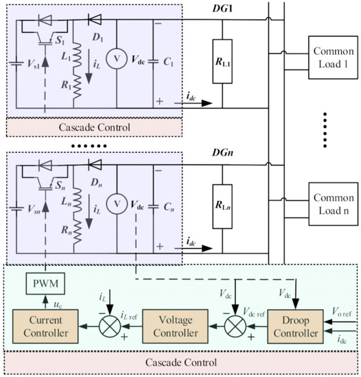 In Figure 1, the main circuit of the microgrid is connected to the DC bus by a plurality of parallel distributed DC power sources Vs through a buck–boost converter and a common load RL.