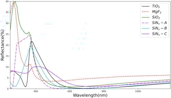 15. Doshi, P.; Jellison, G.E.; Rohatgi, A. Characterization and optimization of absorbing plasma-enhanced chemical vapor deposited antireflection coatings for silicon photovoltaics. Appl. Opt. 1997, 36, 7826–7837. [Google Scholar] [CrossRef]
