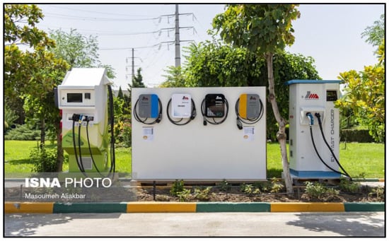 - ISNA News Agency. First Solar Charging Station for Electric Vehicles Unveiled in Iran. Available online: https://en.isna.ir/photo/1400042820220/ (accessed on 10 August 2021).