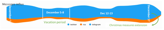 The number of messages on social networks (i.e., Twitter, RSS, and Telegram) about Coronavirus in Spain during the vacation period in December 2020.