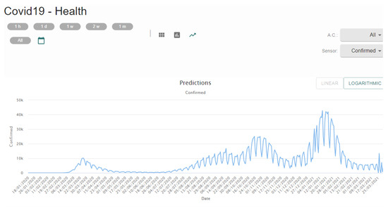 Figure 10 shows that confirmed cases stand out in the three waves that took place in Spain: the first wave from mid-March 2020 to May 2020, the second wave from August 2020 to the end of November 2020, and the third wave from the end of December 2020 to early March 2021. Focusing on the end of March, it can be seen that a new upswing is beginning, leading to the fourth wave that epidemiologists have already announced. Therefore, the proposed techniques are quite reliable in predicting trends in the increase of confirmed cases.
