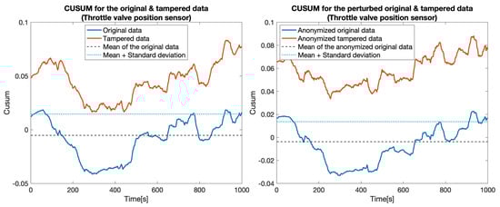 CUSUM for the original data (blue) and tampered data (orange) for the Throttle valve position sensor.
