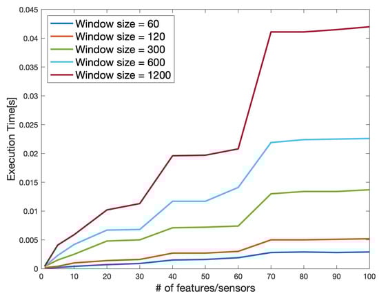 Figure 15 showcases the scalability of the developed data anonymization strategy. Accordingly, the approach scales linearly with respect to the number of features (sensors). To this end, we investigated the scalability for various window sizes (60, 120, 300, 600, 1200) denoting the number of samples considered for anonymization purposes. Subsequently, we gradually increased the number of features from 1 to 100. As shown in the same figure, the approach exhibits a linear behavior with respect to the window size and the number of features (e.g., signals). This further confirms our initial statement that the data anonymization approach is suitable for being hosted inside the vehicle.