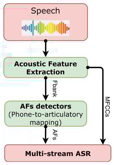 - Cetin, O.; Kantor, A.; King, S.; Bartels, C.; Magimai-Doss, M.; Frankel, J.; Livescu, K. An articulatory feature-based tandem approach and factored observation modeling. In Proceedings of the 2007 IEEE International Conference on Acoustics, Speech and Signal Processing, Honolulu, HI, USA, 15–20 April 2007; Volume 4, pp. 4–645. [Google Scholar]