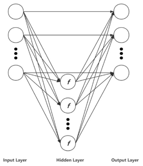 The backpropagation algorithm in ANN has the disadvantages of slow convergence and long learning time. In contrast, the RVFL neural network randomly assigns input weights and biases, uses least squares to train the output weights, does not perform the connection of processing units in the same layer and the feedback connection between different layers, which can make up for the ANN defects [42], has a good non-linear fitting ability. Ren et al. [43] compared the application of RVFL with an ordinary artificial neural network (ANN) in the field of wind power and found that RVFL has better performance. Zhang et al. [44] proved that RVFL is superior to ELM through experiments and comparison of 16 different benchmarks from different fields. Peng et al. [45] applied RVFL and ELM to the emotion recognition task of EEG and found that RVFL was superior to ELM in performance, while both showed excellent performance. The RVFL model structure is shown in Figure 1.
