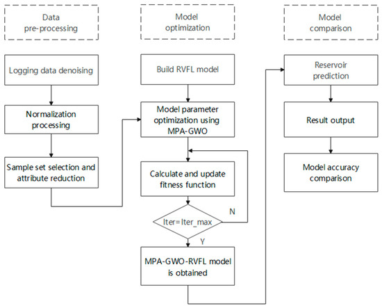 Part 2 of this paper introduces the MPA, GWO and RVFL algorithms. Part 3 uses the MPA algorithm to improve the GWO algorithm and conducts experimental comparison analysis. Part 4 describes the operation flow and specific process of the MPA-GWO-RVFL model, illustrates the method of Oil layer prediction and verifies the improved prediction model in terms of prediction accuracy, stability and convergence performance by analyzing data processing, algorithm parameter setting and experimental results. Section 5 is the conclusion of the paper.