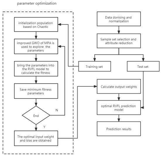 - Since the input weights and deviations in RVFL are set randomly, the prediction accuracy of the model is not high enough, and the stability is poor. In order to overcome this problem, the MPA-GWO algorithm is used to optimize the RVFL to get the optimal input weights and hidden layer deviations.