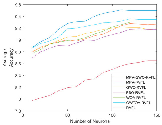 | Number of Enhancement Nodes | MPA-GWO-RVFL | MPA-RVFL | GWO-RVFL | PSO-RVFL | WOA-RVFL | GWFOA-RVFL | RVFL |