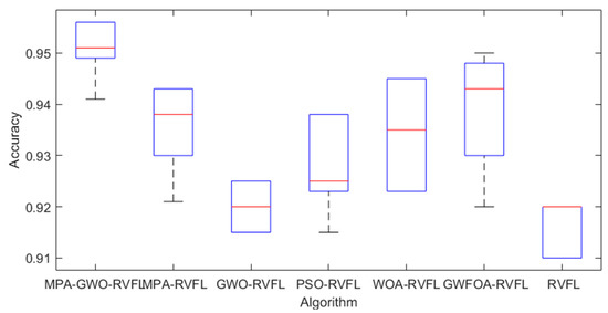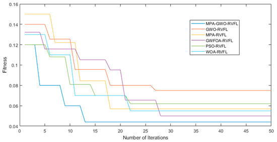 In this study, five other optimization algorithms are set up for comparison experiments with the proposed MPA-GWO-RVFL algorithm, including MPA-GWO, WOA, MPA, GWO, PSO and GWFOA [46]. The experimental environment is a PC with the following configuration: Windows 10 64-bit, Intel Core I5-3210M2.50 GHz, 8 G RAM, MATLAB R2012a.