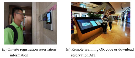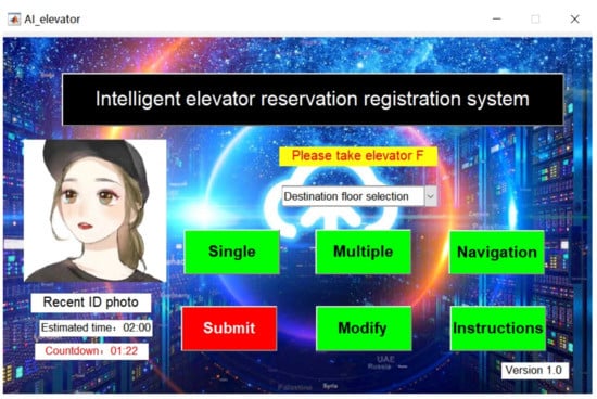 Passengers can scan the QR code or download the official App in advance near the mall and make an appointment 10–120 s in advance. Users are required to submit some primary information when they are first registered, and next time only need to fill in the destination floor. The preliminary information includes the starting floor (The system automatically fills in the starting floor when scanning the QR code.), the destination floor number, and the number of passengers. The system automatically records the submission time. We have already designed the default software system, and the design interface and registration information are shown in Figure 1 and Figure 2.