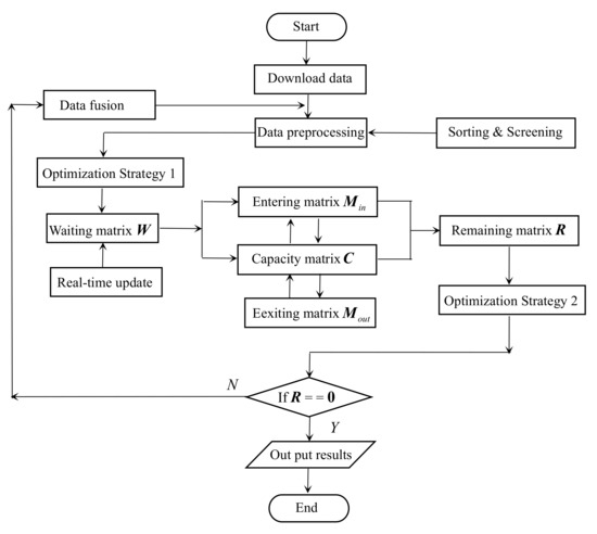 The reservation model is widely used in real-life scheduling problems [27,28,29]. The solution steps of this model are carried out in the following order: the data collection must be completed first and then perform data pre-processing, bring in the optimization model to solve, and, finally, visualize the results. The leading theory of the algorithm includes five parts: reservation data collection, the priority of nearest principle combined with time constraints, real-time matrix movement iteration method, and matrix visualization.