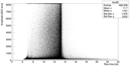 Amplitude vs. rise time of typical pulses captured with a WCD.