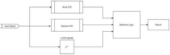 Correlation is used for pulse shape analysis, but it is often performed in postprocessing using software. This may be disadvantageous and lead to a high computational cost for single pulse analysis, which is challenging in embedded applications. Some implementations on FPGA are often utilized in cryptography [41] and neurological image analysis [42] where they take advantage of the parallelism to improve the performance. In the context of WCD, the reference signal for each type of particle is static, making it feasible to use a FIR with normalized coefficients to perform the correlation online. This will save time on postprocessing where millions of pulses need to be discriminated.