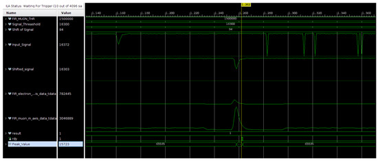 Finite impulse response (FIR) filters are extensively used in digital signal processing (DSP) in cosmic rays detectors and can be easily implemented in reconfigurable platforms. There are several types of implementation on FPGAs ranging from the conventional tapped delay line implemented in Xilinx FIR Compiler [36] to distributed arithmetic filters [37]. This flexibility of implementation in hardware added to the freedom of choice of the coefficients opens the door for high-performance analysis and signal configuration in particle detectors.