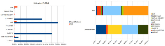 Numerous works aim to map neural networks inference into FPGAs, due to their features like reduced power consumption, high parallelism, high bandwidth and low latency, among others. An extended review in this topic can be found in [29]. Wei et al. [30] proposed a framework for deconvolutional neural networks (DCNN) hardware accelerators, focusing on the efficient utilization of the on-chip memory to improve the performance of the layers bounded by memory. The work presented in [31] proposed an FPGA architecture for DCNNs, and to optimize performance, the authors used loop unrolling and pipelining, memory partitioning and register insertion. Authors in [32] presented a hardware/software co-design for inference tasks; convolutional pooling and padding layers were implemented in FPGA, the rest of the layers were implemented into ARM processor and the computations were realized in reduced precision—8-bit magnitude and sign format.
