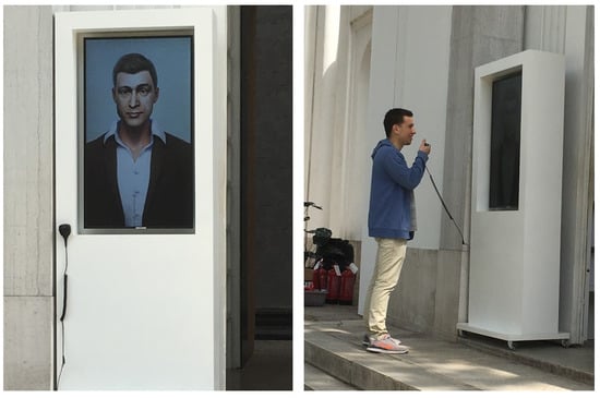 EdgeAvatar was used to create two virtual beings to interact with visitors at the Venice Art Biennale 2019. The Venice Art Biennale, or La Biennale di Venezia, is the oldest international exhibition for contemporary art [17]. While extending throughout the whole city of Venice, Italy, the formal event space is at the Giardini, where national pavilions house the most relevant artistic works from around the world. Each edition of the Biennale has a theme, for 2019, the theme was May you live in interesting times, and had a wide variety of art exhibits, some exploring the intersection of technology and art, and some more conventional. Along with artist Belu Fainaru [18], we installed our virtual beings at the Romanian Pavillion within the Giardini.