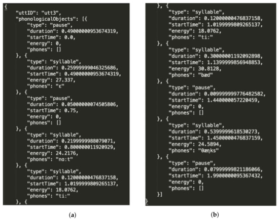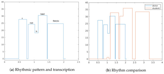 Figure 4a,b). In case, when transcription and rhythm are addressed separately, the former might be visualized as aligned orthographic and phonetic phrases (