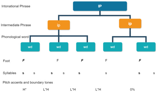 Figure 7). Using this hierarchical approach, prosody is represented in terms of boundaries that mark the edges and prominences such as stress and accent which are assigned to an element within the prosodic constituent at a given level [