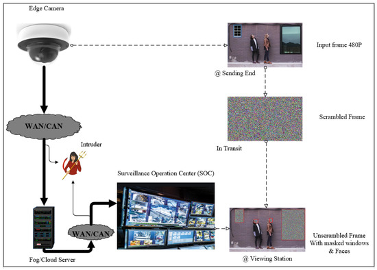 Furthermore, most of the preexisting mechanical surveillance systems rely on security personnel to observe any illicit acts, and to perform analysis of the captured videos whenever deemed necessary. The surveillance capabilities of these public safety and security officers have been drastically boosted by the state-of-the-art CCTV cameras in use today. In other words, the capabilities of the deployed cameras could be potentially exploited or abused which worsens the risk of the privacy breaches of individuals. As the surveillance cameras become more powerfully equipped with better optical and digital zooms, the more likely they are to be abused to peek via windows to gather unauthorized private information on activities or behavioral patterns of individuals and to perform voyeurism unless preventive measures are enforced by design [5,7,8]. For instance, maneuverable cameras, like pan-tilt-zoom (PTZ) cameras, could be abused and directed to intrusively spy on other people in their apartments like the case where a security guard spied on the private apartment of the German Chancellor Angela Merkel using a museum’s CCTV camera [2]. The second major challenge that endangers the privacy of individuals is the possible interception of the video data by adversaries while on transmission from the edge cameras to distant servers. Thirdly, the collected video data could be leaked or abused for blackmailing, stalking, or even extorting individuals by people in charge of the system [8,9].