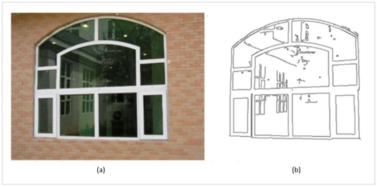 (a) A sample window image, (b) lines, and edges that make up the window obtained after the detection process.