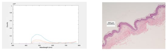 - Drakaki, E.; Borisova, E.; Makropoulou, M.; Avramov, L.; Serafetinides, A.A.; Angelov, I. Laser Induced Autofluorescence Studies of Animal Skin Used in Modeling of Human Cutaneous Tissue Spectroscopic Measurements. Skin Res. Technol. 2007, 13, 350–359. [Google Scholar] [CrossRef] [PubMed]