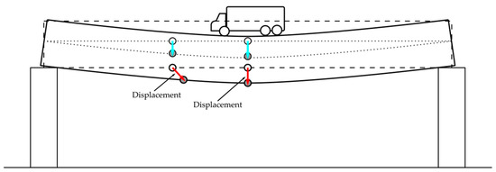 Since a radar can only detect displacement components along the range direction, the effective movement is retrieved by supposing the displacement in the vertical direction. This assumption is often reasonable, but is potentially incorrect when the detected scatter point is far from the so-called “neutral axis” of the bridge. Figure 1 shows pictorially how the effective displacement can have a vectorial direction that differs considerably from the vertical one.