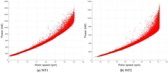 An example of rotor speed-power curve for T1 in WF1 and WF2.