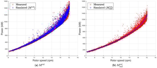 Measured and simulated rotor speed-power curves: D2 data set, T1 wind turbine. model on the left, on the right.