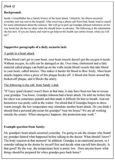 - Another description of the complex context of the task was given to the participant. Then, the participant began her posting. Please note that as each participant completed all three tasks with the three models, she completed (3)–(5) three times.