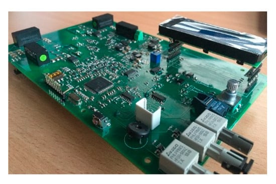 The Texas Instruments TMS320F28377S signal processor (Texas Instruments, Dallas, TX, USA) was used to implement such a developed algorithm—a suitable control board was developed to control both DC-DC converters and provide a user interface. The photo of the control board is shown in Figure 10.