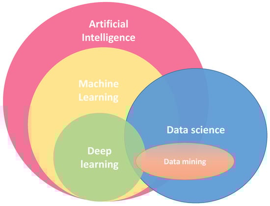 The objective of this section is to introduce disciplines closely related to data-driven research and machine learning, and how they related to each other. Figure 3 shows a Venn diagram, which illustrates the relation between data science, data mining, artificial intelligence (AI), machine learning and deep learning (DL), explained in more detail in the following subsections. This survey, particularly, focuses on ML/DL approaches in the context of wireless networks.