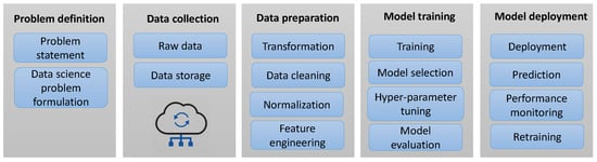 Steps in a machine learning pipeline.