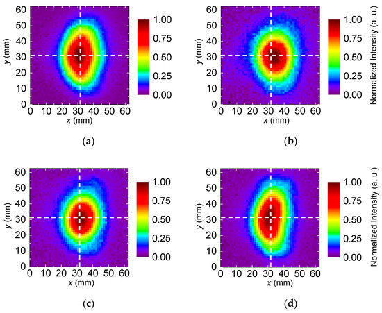 Far-field profiles of THz beam from DFG source: (a) Using detector without BPF; (b) With 2.0 THz BPF; (c) With 2.5 THz BPF; (d) With 3.0 THz BPF.