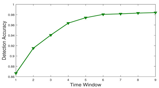 In this experiment, we compute the Detection Accuracy using the caller’s reputation. Figure 9 shows the Detection Accuracy with of the callees reporting the malicious callers in the network. Initially, callers have a neutral reputation, that builds up as new time windows are created. Legitimate callers gain reputation while malicious callers lose their reputation due to their behavior. Therefore the Detection Accuracy increases over time. We can observe from the figure that the Detection Accuracy stabilizes to after a few time windows. To further investigate the type of callers detected correctly, we computed the Detection Accuracy for each type of caller for time window 8. We observed that all the legitimate callers, including genuine and distinct callers, were correctly identified. This means that none of the legitimate calls generated were falsely detected as malicious calls. This is very crucial as blocking legitimate calls decreases the overall reputation of the service provider. Regarding malicious callers, autodialers and attackers were completely detected. However, the telemarketers are detected with an Detection Accuracy of . This means that only a few telemarketing calls will go undetected and will be considered legitimate calls. This shows that caller reputation can effectively detect malicious callers while completely minimizing the chances of falsely detecting a legitimate caller as a malicious caller.