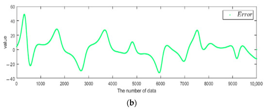 (a) Chaotic systems without a proportional-derivative (PD) controller; (b) The error of the chaotic systems without a PD controller.