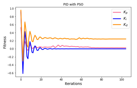 Response of X (Kp, Ki, Kd) with Particle Swarm Optimization (PSO).